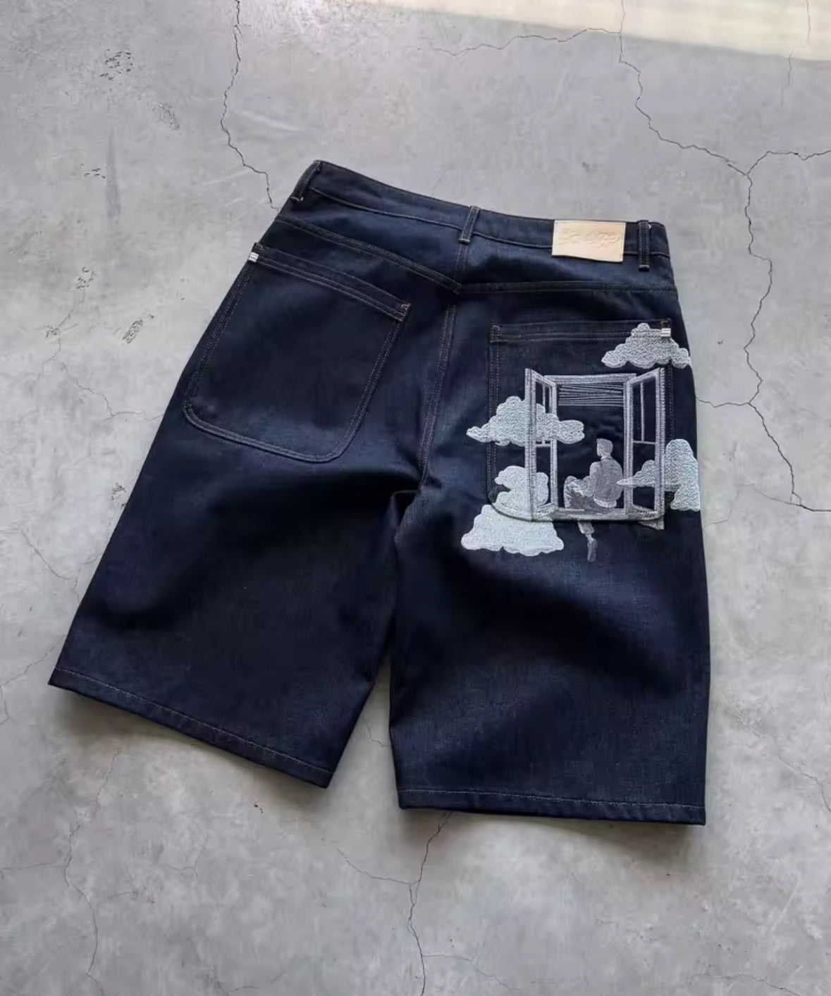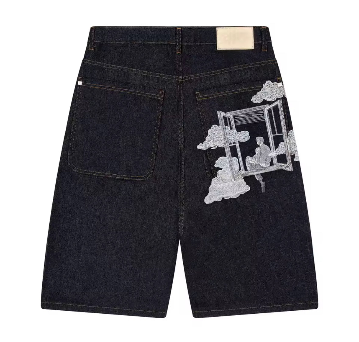 Shortsy „Window” są dostępne w dwóch klasycznych kolorach – granatowym i czarnym, więc łatwo je dopasujesz do każdego outfitu. To, co je wyróżnia, to mega zajawkowy nadruk z tyłu – widzisz tam okno, chmurki i ziomka siedzącego na parapecie, jakby właśnie odpoczywał i patrzył na świat z dystansem. Całość ma taki artystyczny, lekko chillowy vibe, który sprawia, że te shortsy to nie tylko wygoda, ale też stylówka z charakterem. Jeśli szukasz czegoś, co podkręci Twój look i doda mu luzu, to „Window” będą strzałem w dziesiątkę. Krótkie spodenki, które łączą w sobie luz, sztukę i streetwearową nutę – idealne na każdą okazję!